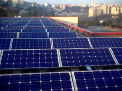 La sede dell’Istituto tecnico per Geometri “Bramante” di Macerata, di proprietà della Provincia, è stata dotata di un impianto per la produzione di energia elettrica da fonte fotovoltaica. In pratica, sul tetto dell’edificio – che si trova in via Gasparrini - sono stati montati 168 “pannelli solari”, in silicio policristallino, per una potenza complessiva di 20.160 watt. Disposti su più file (12 stringhe, ciascuna con 14 moduli in serie), i pannelli sono a una distanza tale da evitare il mutuo ombreggiamento. L’impianto è già in grado di funzionare. A regime garantirà la copertura di un terzo del fabbisogno di energia elettrica della scuola. Dunque, un risparmio considerevole. I lavori per la sua installazione, seguiti dall’Ufficio tecnico della Provincia, sono stati realizzati dalla “Gechelin Group srl” di Vicenza. L’intervento è stato finanziato per il 70 per cento (oltre 200 milioni delle vecchie lire) dal Ministero dell’Ambiente che, a suo tempo, ammise la Provincia di Macerata fra gli enti pubblici beneficiari del contributo in conto capitale per la realizzazione di impianti fotovoltaici. L’apposita commissione tecnica del Ministero, infatti, ritenne meritevole di attenzione il progetto riguardante l’Istituto tecnico per Geometri, presentato in risposta a un bando pubblico del marzo 2001 e – appunto - finalizzato all’installazione di pannelli solari collegati alla rete elettrica di distribuzione.