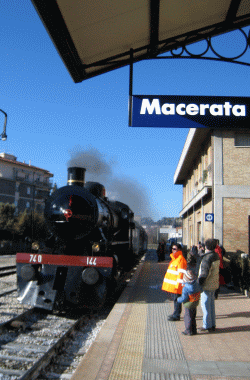 La cerimonia per celebrare i 120 anni della ferrovia Civitanova-Albacina, che si è svolta questa mattina alla stazione di Macerata, è stata in un certo senso anche la vittoria del futuro sul passato. A dare il via alla celebrazione dovevano essere due treni attesi contemporaneamente alle 10 in stazione, ma mentre il moderno Minuetto di Trenitalia, partito da Ancona, è giunto in orario con i suoi passeggeri, tra cui sindaci ed amministratori dei centri attraversati, il secondo treno delle Ferrovie dello Stato, una locomotiva a vapore con carrozze d’epoca, partito poco dopo le 6 da Fabriano, si è dovuto “arrendere” una volta giunto a Tolentino. Entrando in stazione, infatti, ha perso una delle staffe che spingono le grandi ruote in ferro della locomotiva. Dopo la riparazione è ripartito per Macerata dove è giunto poco dopo le 13, a cerimonia ultimata, ma ugualmente atteso da tanta gente, soprattutto bambini. “E’ un segno dei tempi”, ha detto l’assessore provinciale ai trasporti, Marco Romagnoli, nell’aprire la cerimonia, dopo che l’altoparlante della stazione aveva annunciato la “disavventura” della storica locomotiva. Ai numerosi cittadini presenti e ai molti sindaci ed assessori delle città servite dalla ferrovia, giunti con i rispettivi gonfaloni comunali, Romagnoli ha ricordato l’impegno della Provincia per scongiurarne in passato la soppressione e ora per rilanciarne la funzione in un sistema integrato dei trasporti sul territorio. A nome di tutti i sindaci ha preso la parola il primo cittadino di Macerata, Giorgio Meschini, per il quale la celebrazione dei 120 anni della linea deve essere il momento di partenza per un sforzo a migliorare il servizio che essa svolge. Anche il vescovo, mons. Claudio Giuliodori, che ha celebrato la Messa all’aperto a pochi metri dai binari, durante la sua omelia - nel ricordare come la costruzione della ferrovia abbia segnato uno “spartiacque” storico per lo sviluppo – ha esortato affinché la celebrazione dei 120 anni di attività della linea ferroviaria costituisca un giusto momento per ricordare i benefici che essa ha portato e nello stesso tempo anche l’occasione per programmarne il futuro. L’assessore regionale ai trasporti, Pietro Marcolini, ha annunciato che la Regione Marche sta lavorando insieme al Compartimento ferroviario per uno studio di fattibilità relativo all’elettrificazione della linea ferroviaria maceratese; un primo passo verso la cosiddetta “metropolitana di superficie” che in un primo tempo interesserà la tratta verso la costa. Lo steso Marcolini, insieme al capo compartimento delle Ferrovie, Paolo Pallotta, al sindaco di Macerata, Meschini, al vice presidente della Provincia, Vitali, e ai rappresentanti dei Comuni presenti, ha poi scoperto la targa commemorativa posta sulla parete esterna della stazione. La targa è stata realizzata dall’artista civitanovese, Mauro Brattini, autore anche del bozzetto per l’annullo postale filatelico concesso per l’occasione dalle Poste italiane, del disegno per la cartolina celebrativa e della copertina del volume dedicato alla storia della ferrovia che, a cura di Giulietta Bascioni e Pacifico Aringolo, è stato edito dalla Provincia. La cerimonia celebrativa, organizzata dall’assessorato provinciale ai trasporti con la collaborazione dell’Avis e del Dopolavoro ferroviario di Civitanova, è stata arricchita dalle esecuzioni musicali della Banda comunale di Pollenza e dei gruppi folk di Castelraimondo e Cancelli di Fabriano.