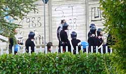Carabinieri e Polizia in equipaggiamento antisommossa hanno dovuto placare gli animi del post partita. Per alcuni momenti si č temuto che la situazione degenerasse, ma poi tutto č rimasto sotto controllo. La zona č rimasta presidiata dalle forze dell'ordine per oltre un'ora.