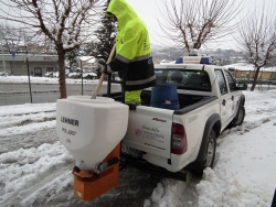 Dal primo pomeriggio è entrata in azione, in viale Mazzini e in alcune vie e piazzette del centro di San Severino Marche, una delle due turbine che saranno utilizzate dal Comune per sgomberare i marciapiedi dalla neve e dal ghiaccio. Sempre nell’area urbana operai e volontari del gruppo comunale di Protezione Civile sono intervenuti con gli spargisale montati a bordo dei fuoristrada. Da ieri sono al lavoro anche le ditte private incaricate dello sgombero neve in città e nelle numerose frazioni.