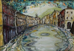Anche sotto la neve San Severino Marche si conferma città d’arte. Domenica 12 febbraio, la cerimonia del taglio del nastro è prevista per le 16, si inaugura infatti la mostra personale di Franco Marini. L’esposizione, a cura di Francesco Rapaccioni, verrà ospitata nella sala degli Stemmi, a palazzo comunale. Nato a Civitavecchia nel 1935 da genitori di origini settempedane, l’artista durante la guerra si trasferisce con la famiglia a San Severino stabilendo la residenza a palazzo Collio, messo a disposizione degli sfollati dal conte Francisci. Saranno quelle stanze ricche di quadri ad affascinarlo e a spingerlo a cimentarsi nella pittura. Inizia a dipingere da autodidatta e coltiva la sua passione conciliandola con l'attività di imprenditore nel settore calzaturiero. La discrezione lo ha spesso trattenuto dall'esporre al pubblico i suoi lavori e dal partecipare a mostre collettive ed extempore. Questa, dunque, è la sua prima personale. Nelle sue opere è assente la presenza umana. Ma solo apparentemente. Una lucida, critica e particolarmente severa ricerca interiore, ha forzato le linee, piegato i colori alla rappresentazione di una inquietudine derivata dalla certezza della ricchezza e della multiformità dell'animo umano. La pennellata è caratterizzata da un'ansia di ricerca e, al tempo stesso, dalle certezze che sono nel vissuto di ogni uomo. I cieli incombono su paesi disabitati ma non opprimono, non minacciano. I cieli sono la caratteristica prima e principale di Franco Marini: fanno da tetto a una condizione esistenziale dominata da un groviglio di emozioni e sentimenti e da sfondo a una esistenza intatta e appagata. Colori a larghe campiture, pesante contornatura nera, alberi ritorti, case senza porte né finestre ma piene delle nostre proiezioni interiori, dei nostri desideri che lì si sentono accolti, tutelati, degni di essere vissuti fino in fondo e fino alla fine, nella più piena consapevolezza. Franco Marini parte dalla certezza che le presenze consolano e rassicurano più delle assenze, ma, con i suoi quadri, ci dimostra che è miglior cosa fare affidamento sulle assenze, in quanto tali. L'universo di Franco Marini è tempestoso e solitario, perennemente in fieri, una realtà magmatica in cui fluttuano i sentimenti: non espliciti ma suggeriti, con la discrezione che gli è propria anche nella vita. I colori sono intensi e le case risaltano sotto cieli plumbei e vorticosi, pesanti e materici. Ma il senso non è desolazione. Tutt'altro: è la rappresentazione lucida e concreta di un mondo rassicurante che ai più sfugge. La mostra, promossa in collaborazione con Pro Loco di San Severino Marche e i Teatri di Sanseverino, resterà aperta fino al 26 febbraio dalle ore 16 alle 19.