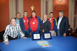 Assunta Legnante, medaglia d’oro nel Getto del Peso alle recenti Paralimpiadi di Londra e Riccardo Scendoni, atleta che ha fatto parte della stessa squadra azzurra, gareggiando nei 100, 200 e 400 metri, sono stati ricevuti dall’Amministrazione provinciale, a Macerata. I due atleti, tesserati con l’Associazione sportiva Anthropos di Civitanova Marche, hanno ricevuto i complimenti per le loro brillanti imprese agonistiche da parte del presidente Antonio Pettinari. Presenti anche l’assessore allo sport, Giovanni Torresi e l’assessore alle politiche sociali, Leonardo Lippi, Pettinari ha consegnato ad Assunta Legnante ed a Riccardo Scendoni una targa a testimonianza della riconoscenza della comunità provinciale per il loro impegno, sacrificio, passione, talento, nonché amore per la vita e per i veri valori dello sport. All’incontro erano presenti anche Nelio Piermattei, presidente dell’A.S. Anthropos e William Sacripanti, consigliere delle stessa associazione.