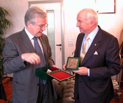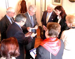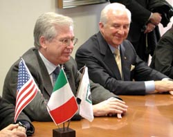 “E’ stato un incontro molto cordiale nel corso del quale abbiamo parlato delle caratteristiche del modello marchigiano e delle vocazioni della nostra regione. Ho anche illustrato i problemi connessi alla transizione che, sia l’Italia con il processo verso il federalismo, sia l’Europa con la riforma delle sue istituzioni stanno vivendo in questa fase storica.” Il presidente Vito D’Ambrosio ha così sintetizzato ai giornalisti l’andamento dell’incontro con l’ambasciatore USA in Italia, Mel Sembler, che ha avuto questa mattina presso la sede regionale di Palazzo Raffaello. L’Ambasciatore, da parte sua, ha affermato che “è un vero piacere compiere una visita nelle Marche ad un anno dal suo incarico in Italia. Ho desiderato visitare questa regione e quello di oggi è il mio primo viaggio in terra marchigiana. Ero curioso di apprendere direttamente da chi lo ha realizzato le peculiarità del modello marchigiano, di cui si parla molto nel mondo. Ieri ho incontrato molti imprenditori e questa sera continuerò a farlo. Attraverso il dialogo riesco ad apprendere e conoscere meglio il sistema produttivo regionale.” Sembler ha poi aggiunto, rispondendo ad una domanda se ha trovato l’Italia diversa rispetto agli anni ’70 (suo figlio ha frequentato in quel periodo l’Università a Roma), che “per conoscere realmente il nostro Paese occorre recarsi in molte regioni e città, non solo nei centri più belli ed importanti come Firenze, Venezia, Roma o Napoli. L’Italia è una nazione con grandi diversificazioni al suo interno. Negli Stati Uniti esistono accenti diversi nel parlare l’inglese, ma non c’è alcun paragone con la ricchezza dialettale italiana.” Sembler ha poi sottolineato la grande amicizia tra USA e Italia, un rapporto che si è consolidato con le vicende della seconda guerra mondiale quando molti giovani statunitensi hanno perso la loro vita per liberare il Paese dal fascismo e dal nazismo. L’Italia è oggi un alleato fedele: siamo insieme in Afghanistan, nei Balcani e le relazioni economiche e commerciali sono molto solide e sviluppate. I giornalisti lo hanno interrogato anche sulla devolution e l’Ambasciatore ha detto di averne parlato con D’Ambrosio. “Il Governo USA guarda al processo in corso con molta attenzione. Anche il partito repubblicano, ha messo in rilievo Sembler, pensa che poteri e risorse debbano essere trasferiti dallo Stato federale agli Stati singoli e alle Contee. Potere decisionale e flussi finanziari debbono essere vicino ai cittadini. Poteri senza le risorse servono però a poco. L’Ambasciatore USA si è infine soffermato sulla situazione in Iraq e sul possibile conflitto. “Saddam Hussein – ha rimarcato Mel Sembler – ha armi di distruzione di massa e l’Occidente non può dormire sonni tranquilli. Abbiamo visto tutti quello che è successo l’11 settembre: terroristi votati al suicidio e 3033 innocenti di 80 nazioni uccisi. Nessuno ama la guerra, nemmeno Bush, ma Saddam Hussein deve rispettare la risoluzione dell’ONU e distruggere il suo arsenale di guerra.” Cogliendo questa affermazione D’Ambrosio e Sembler hanno insieme auspicato che il conflitto armato sia evitato.